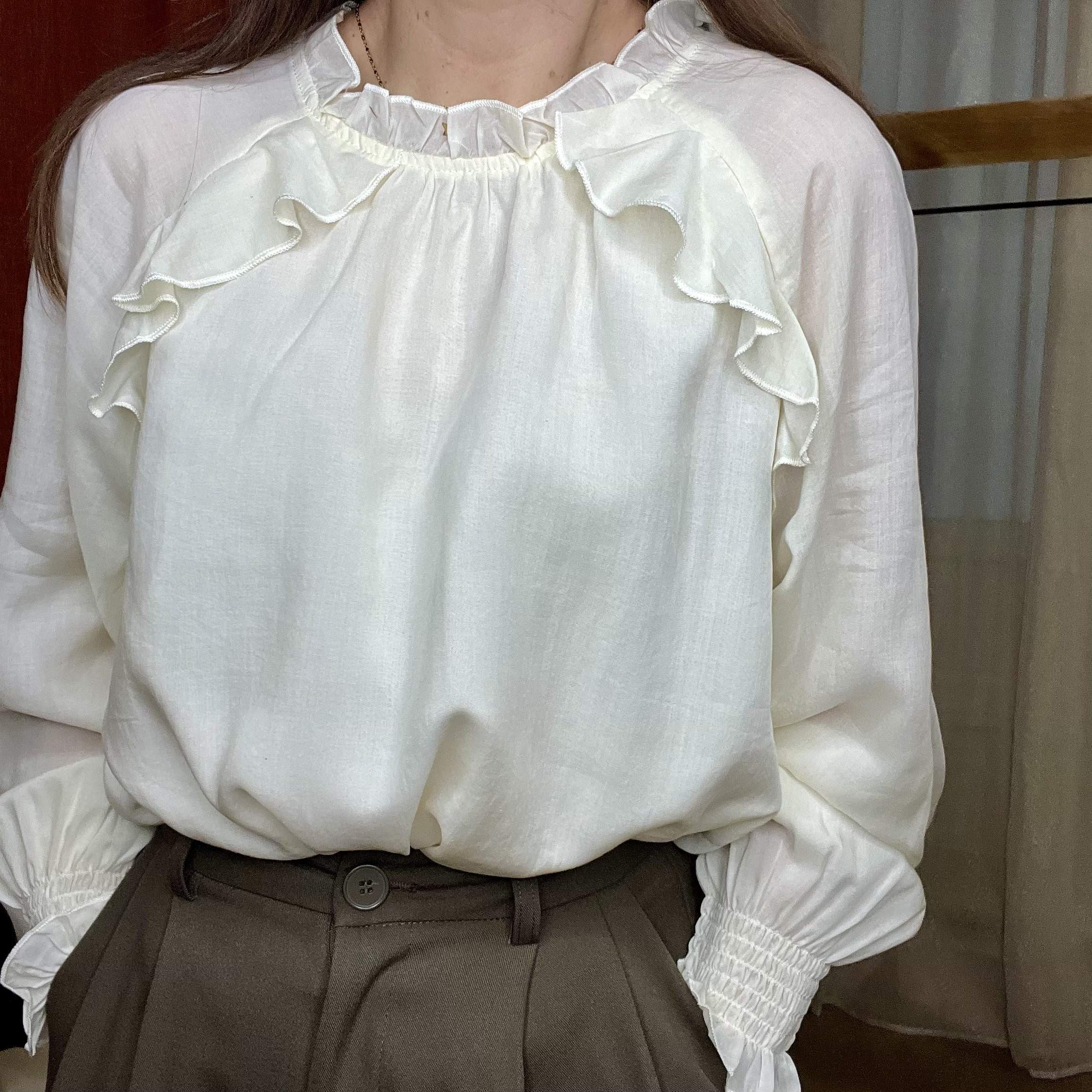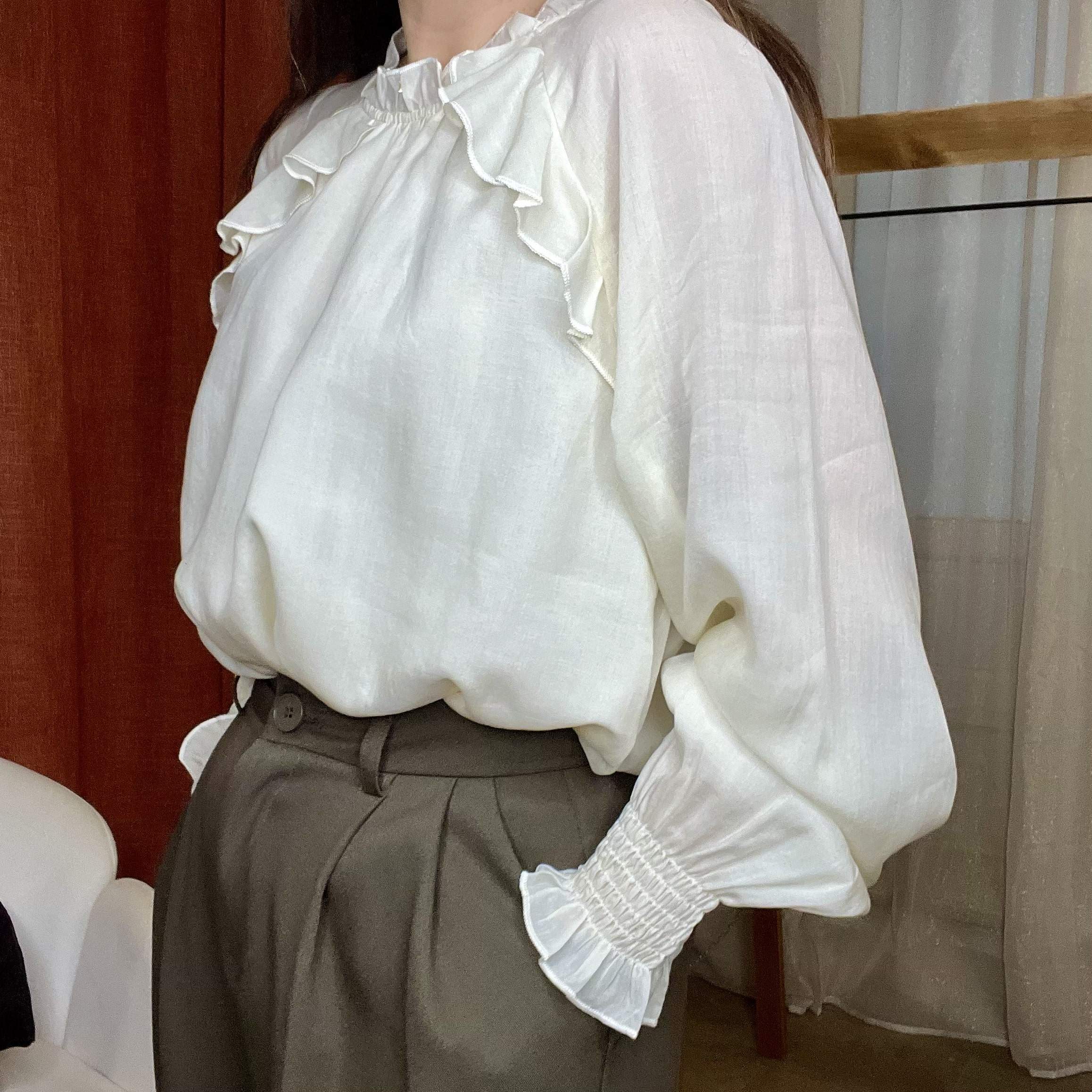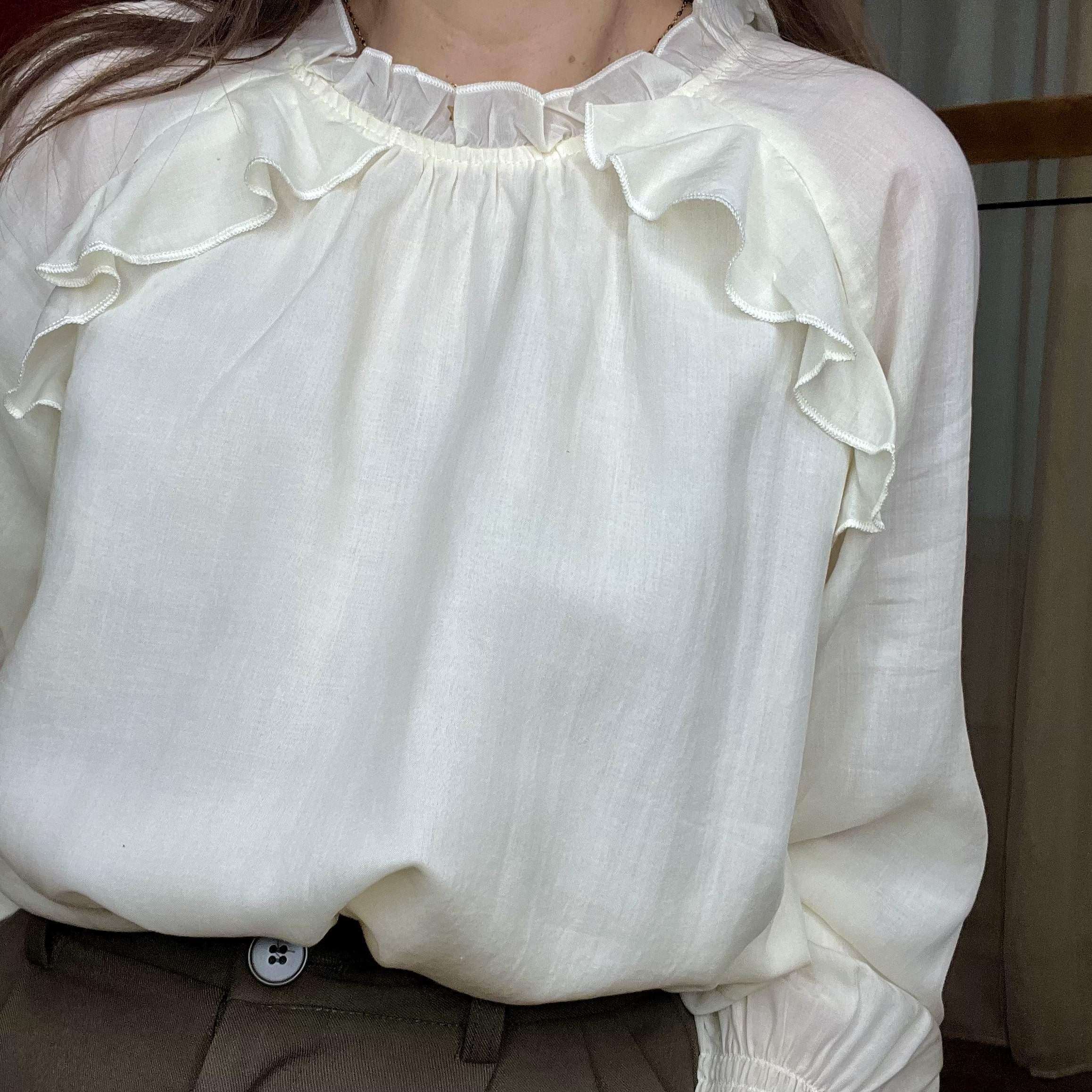 La blouse VALENTINA séduit par ses volants délicats et ses finitions soignées.