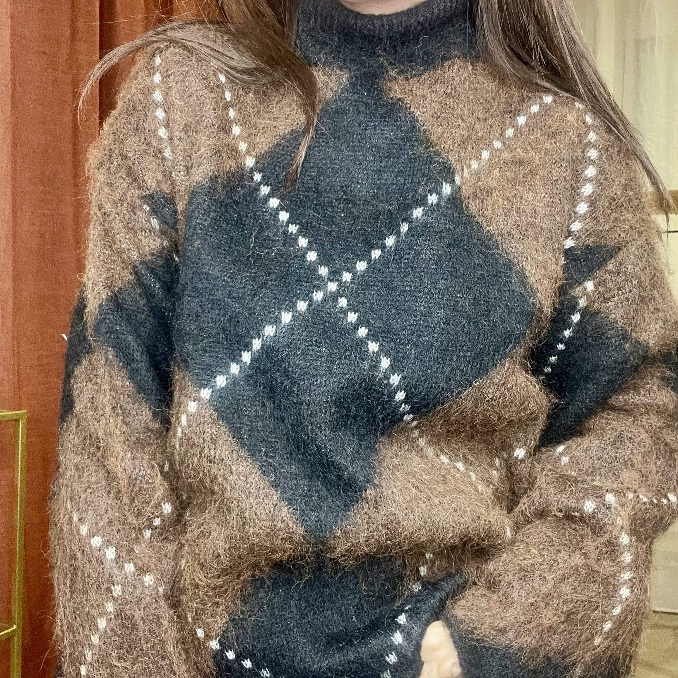 Pull col montant jacquard losange – URSULE – Taille Unique