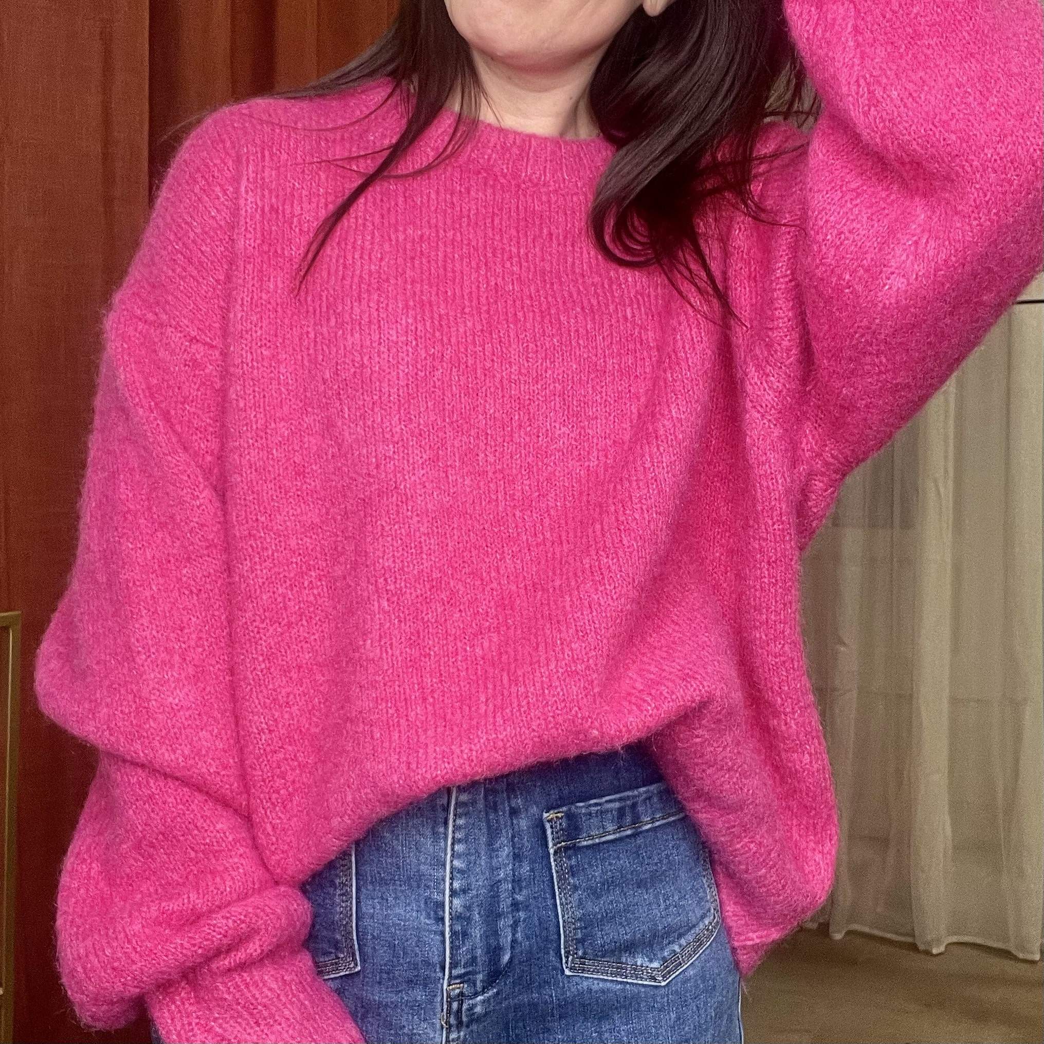 Pull JACKY – grosses mailles – Fuchsia – Taille unique