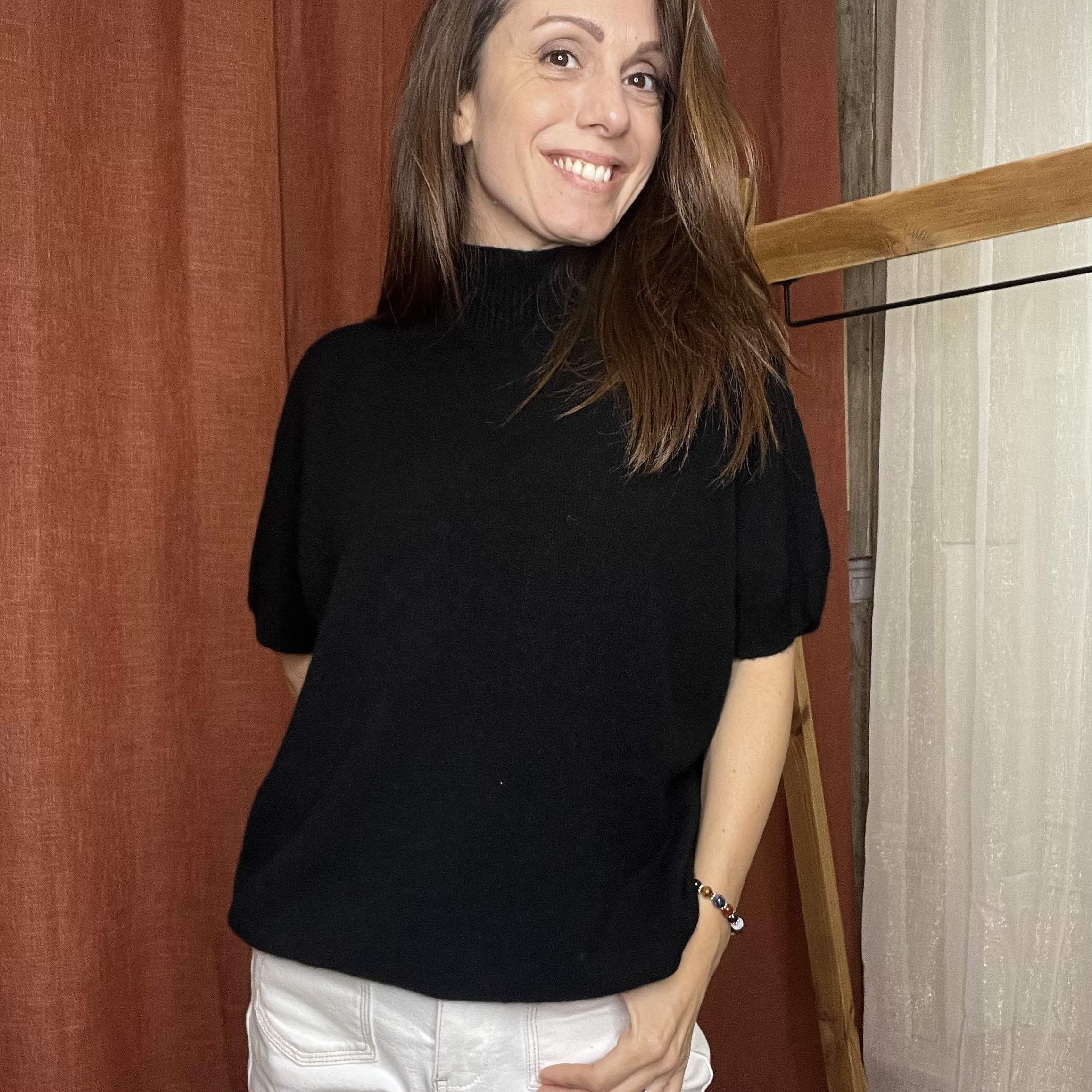 Pull manches courtes MILANO noir – Fabriqué en Italie
