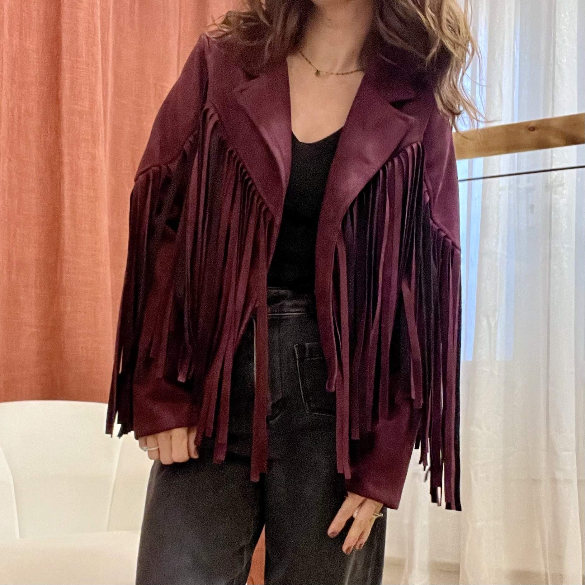 La veste ARIZONA aubergine est la pièce parfaite pour celles qui aiment les couleurs profondes et sophistiquées.